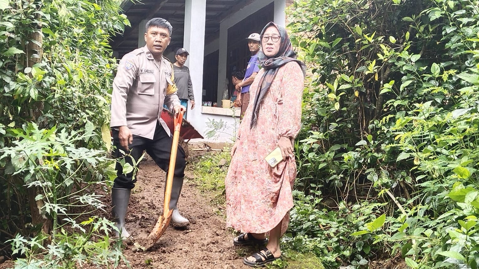 Kegiatan Bakti sosial di rumah warga pasca longsor berjalan dengan lancar dan kondusif dari pihak TNI,POLRI,Kecamatan dan pihak terkait yang ikut serta kerja bakti di rumah warga tersebut.