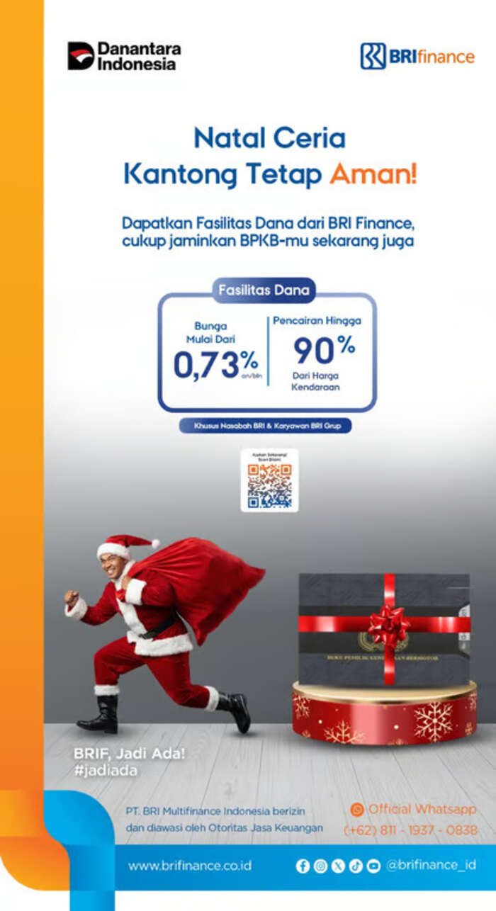 Memasuki momentum Natal dan libur akhir tahun, kebutuhan masyarakat untuk bepergian, pulang kampung, hingga memenuhi berbagai keperluan keluarga cenderung meningkat. Di tengah suasana yang lekat dengan kebersamaan dan refleksi, PT BRI Multifinance Indonesia (“BRI Finance”) menghadirkan program pendanaan spesial sebagai solusi untuk membantu masyarakat mempersiapkan musim liburan dengan lebih terencana dan nyaman.